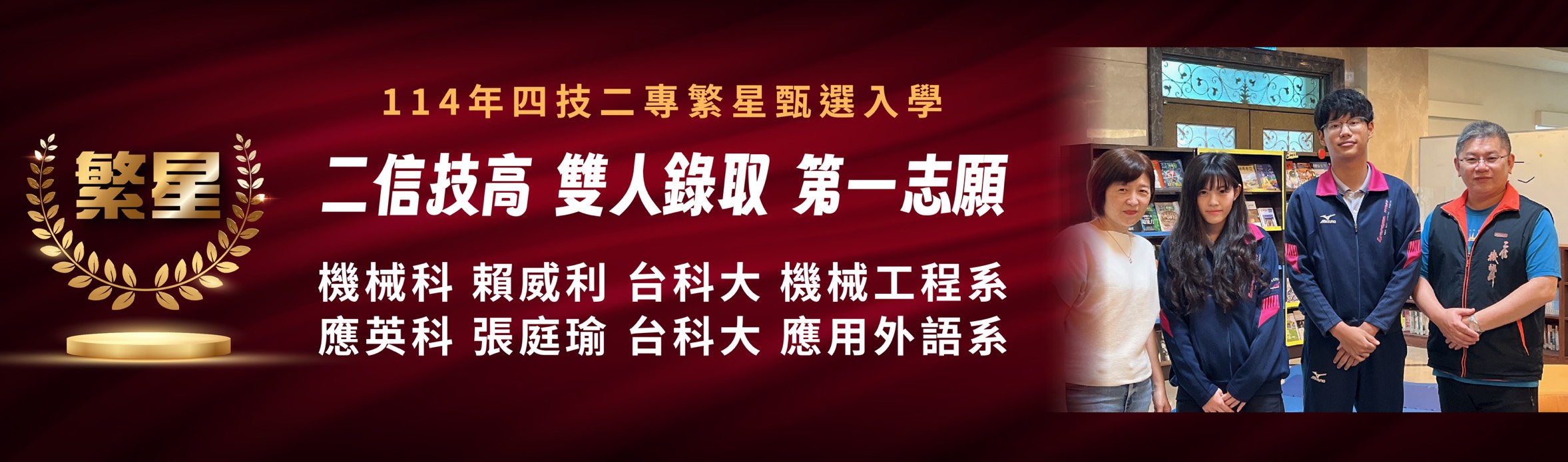 (1140506)114年全國科大放榜,二信高中首度二位錄取台科大