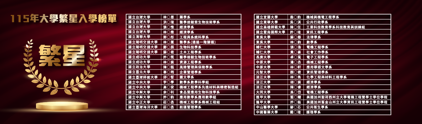 (1150318)115大學繁星入學放榜二信高中成績亮麗, 台灣大學4人錄取,1人通過陽明交大醫學系